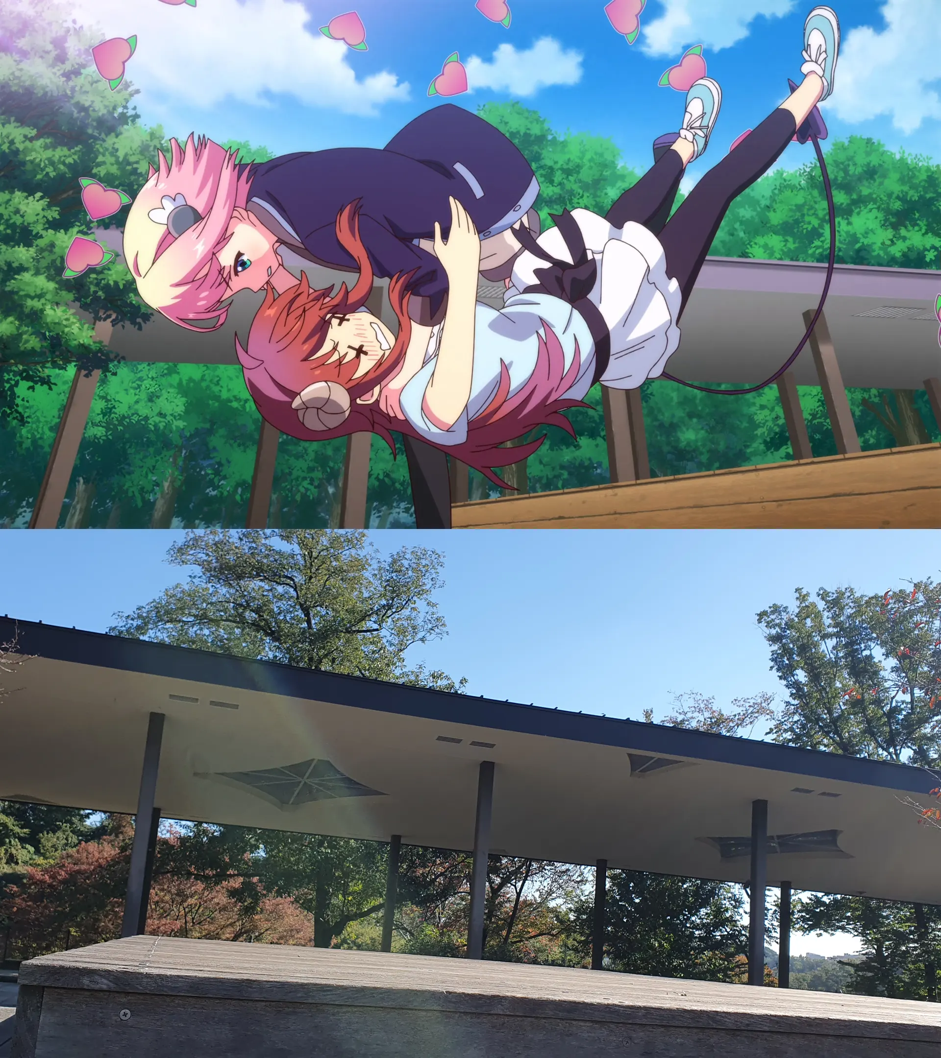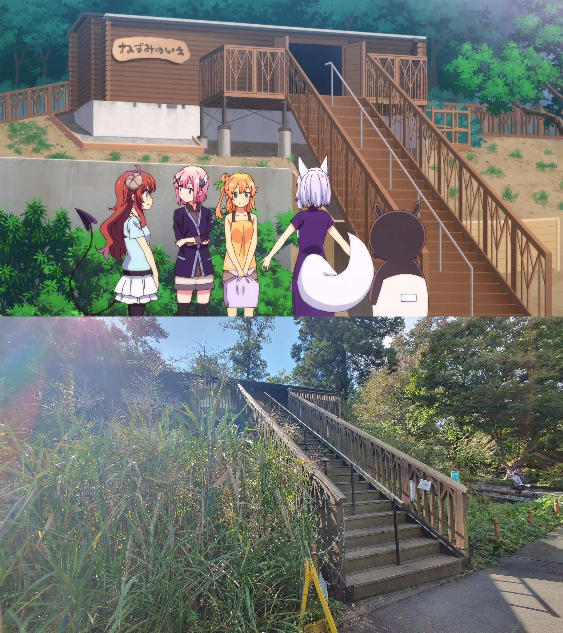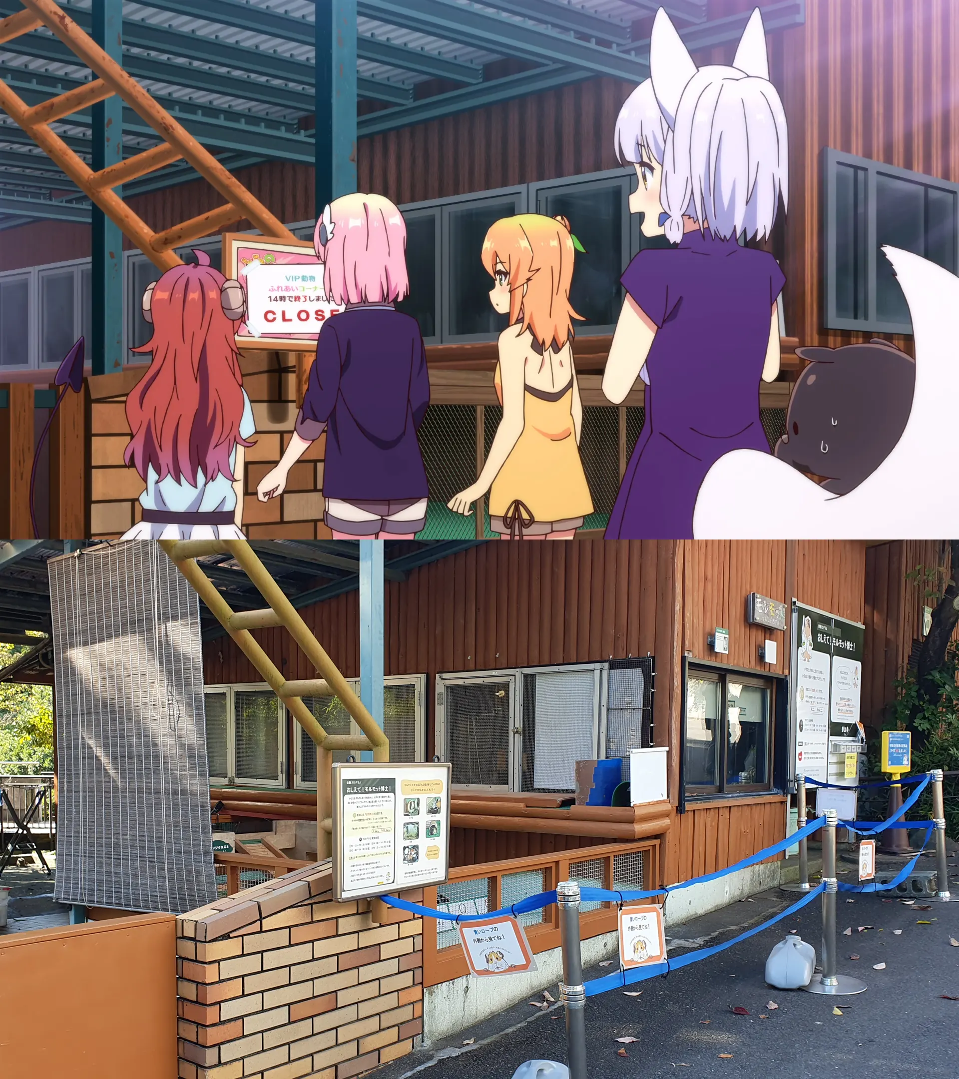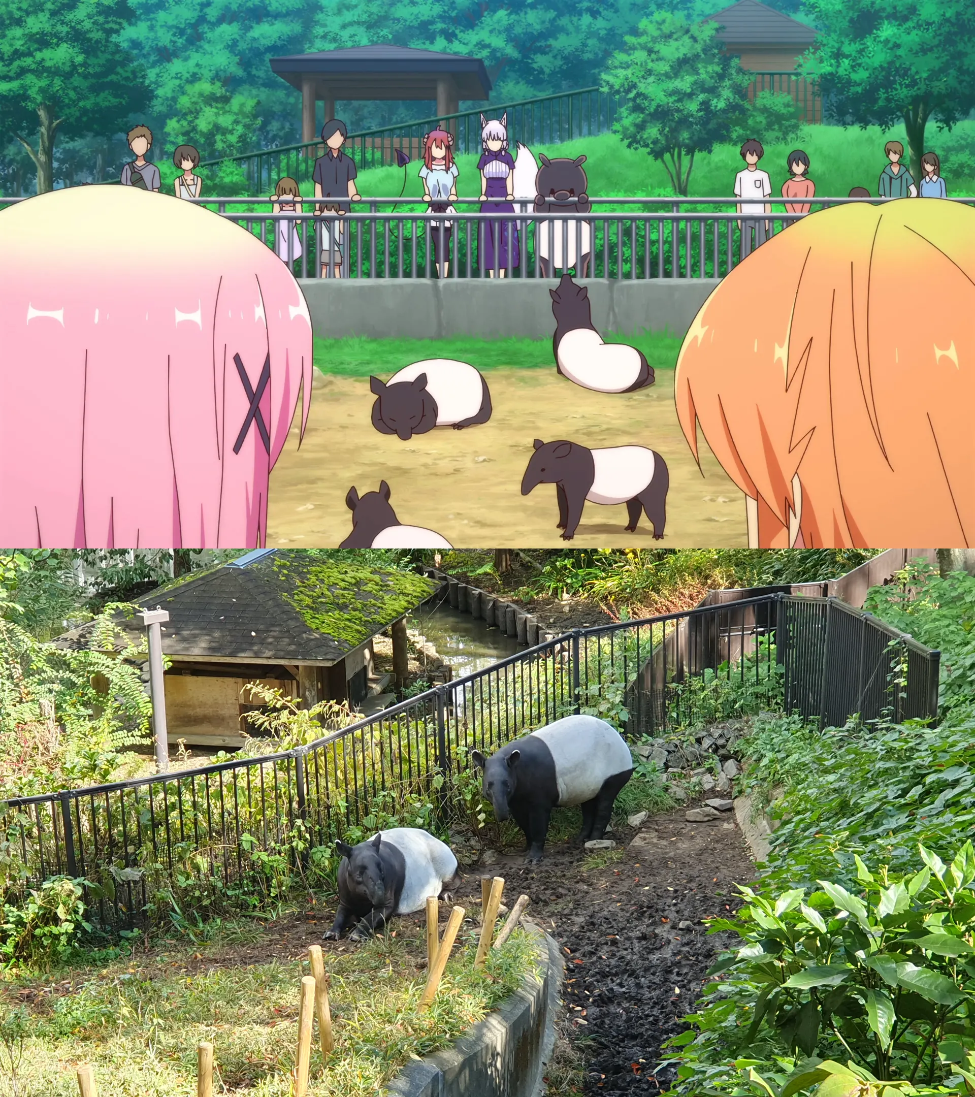 애니메이션에서는 난간의 높이도 낮고, 저쪽에서 바로 맥을 관찰할 수 있는 것처럼 표현했지만 실제로는 좀 멀리 떨어져 있다.