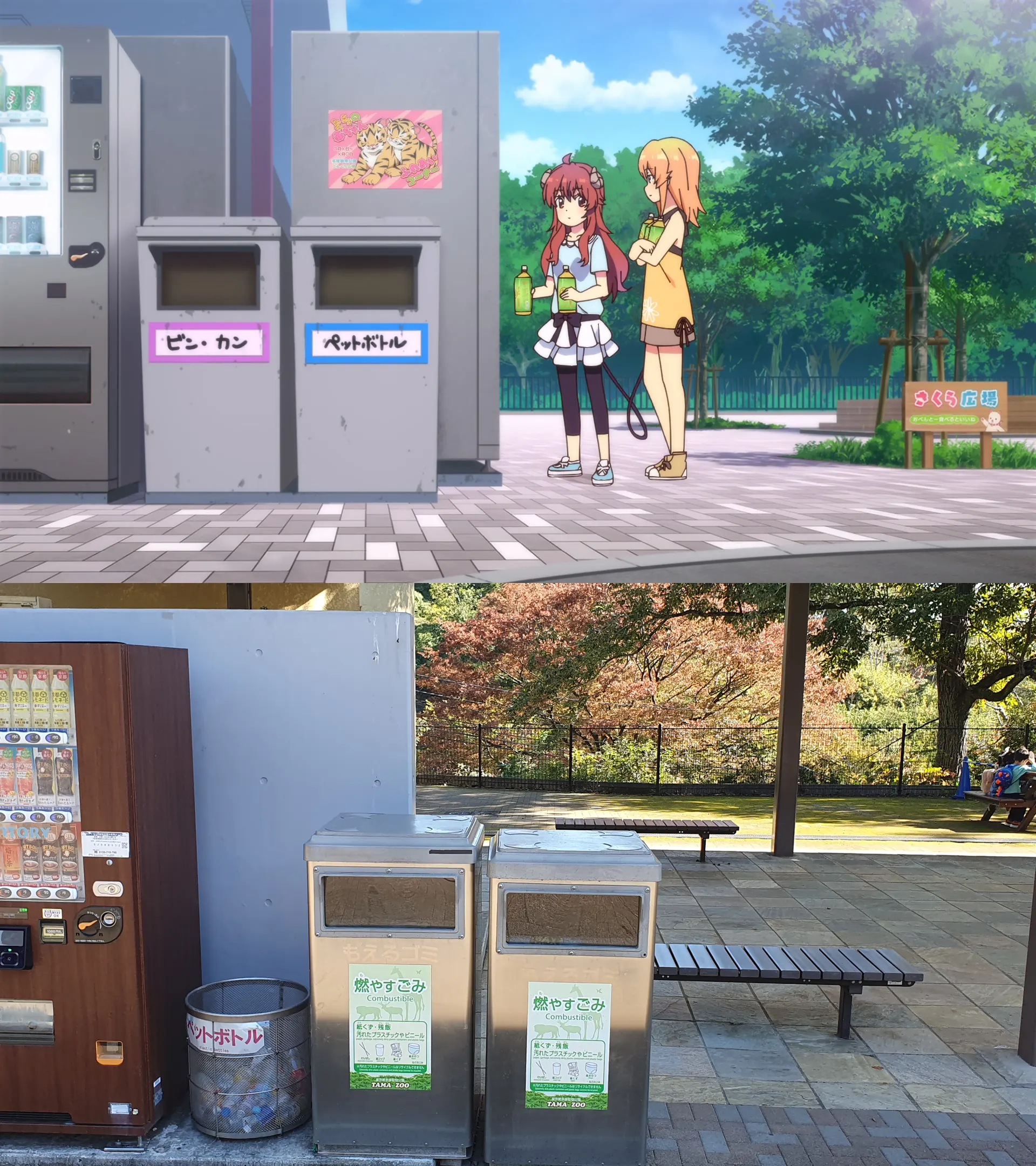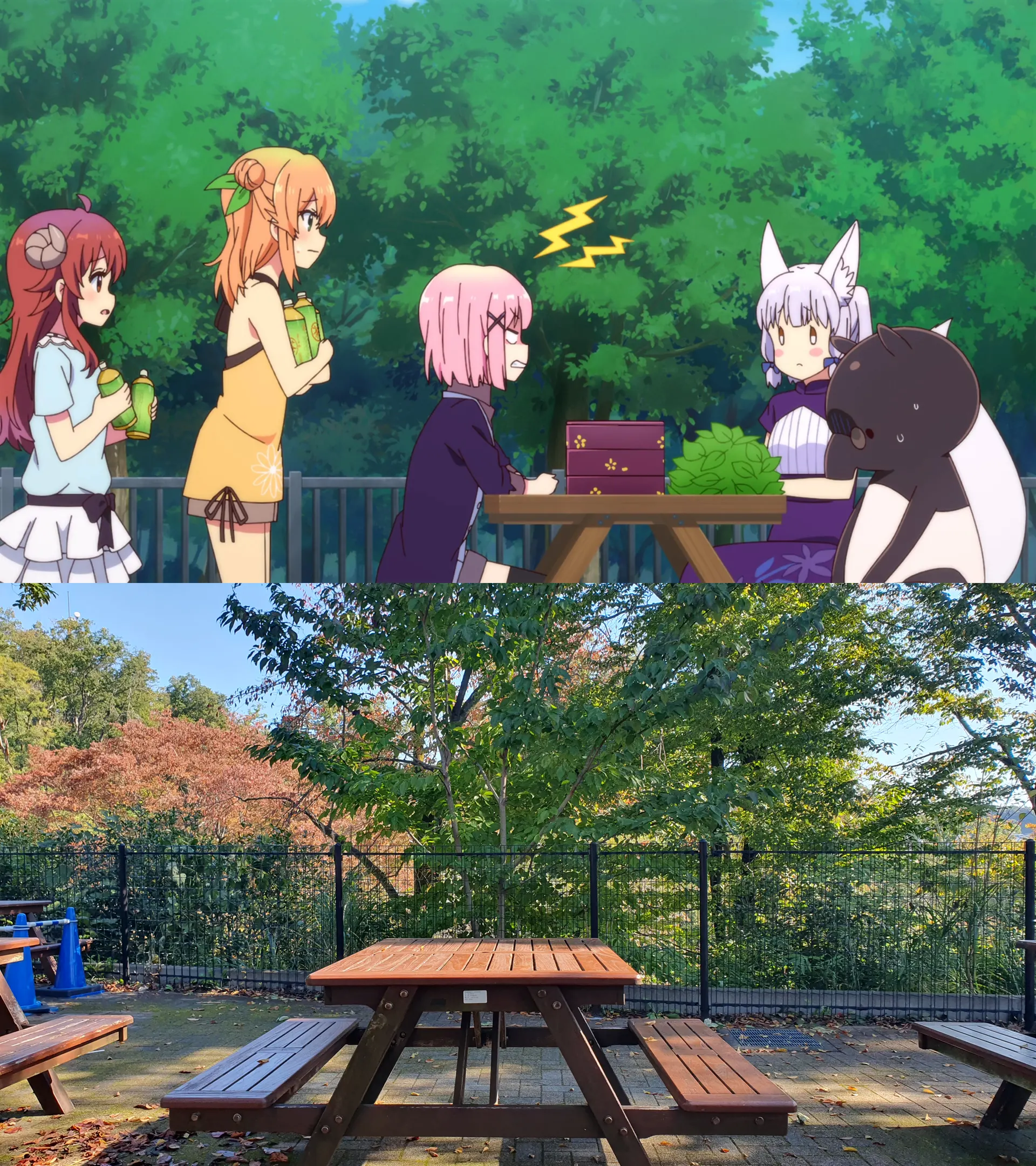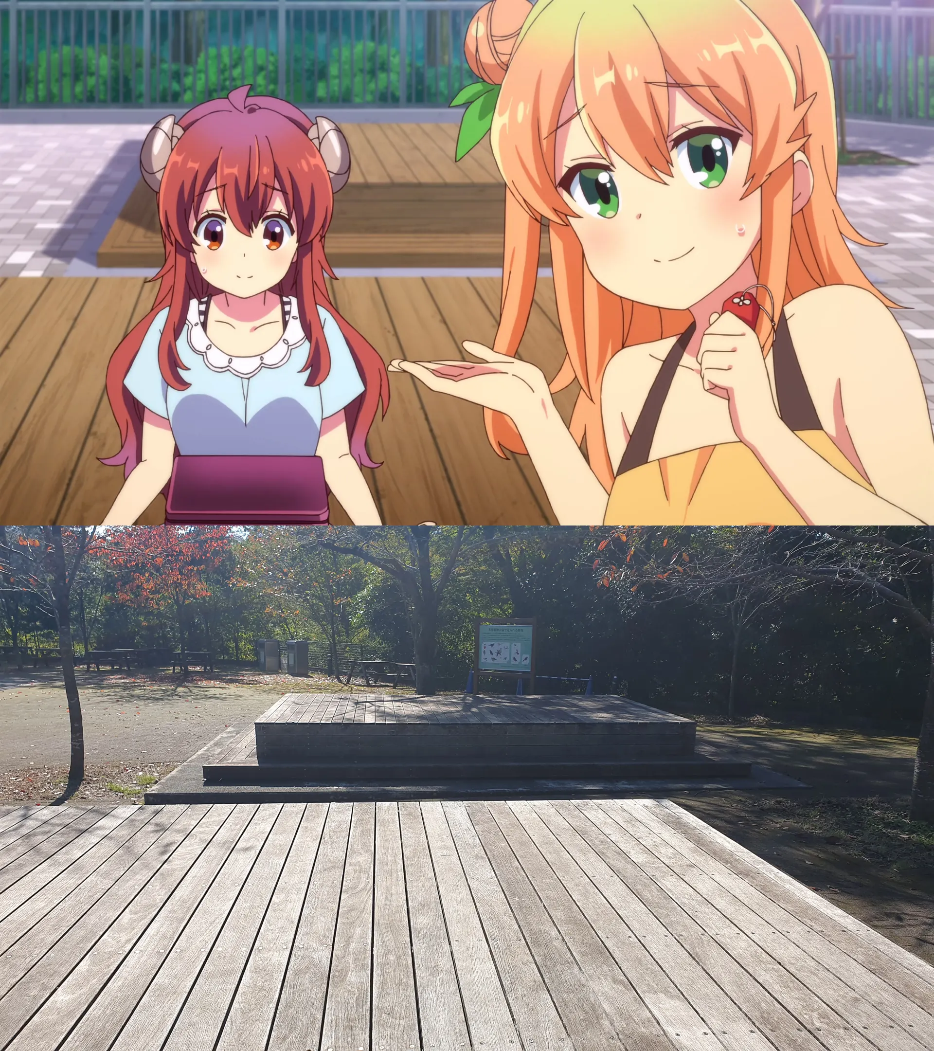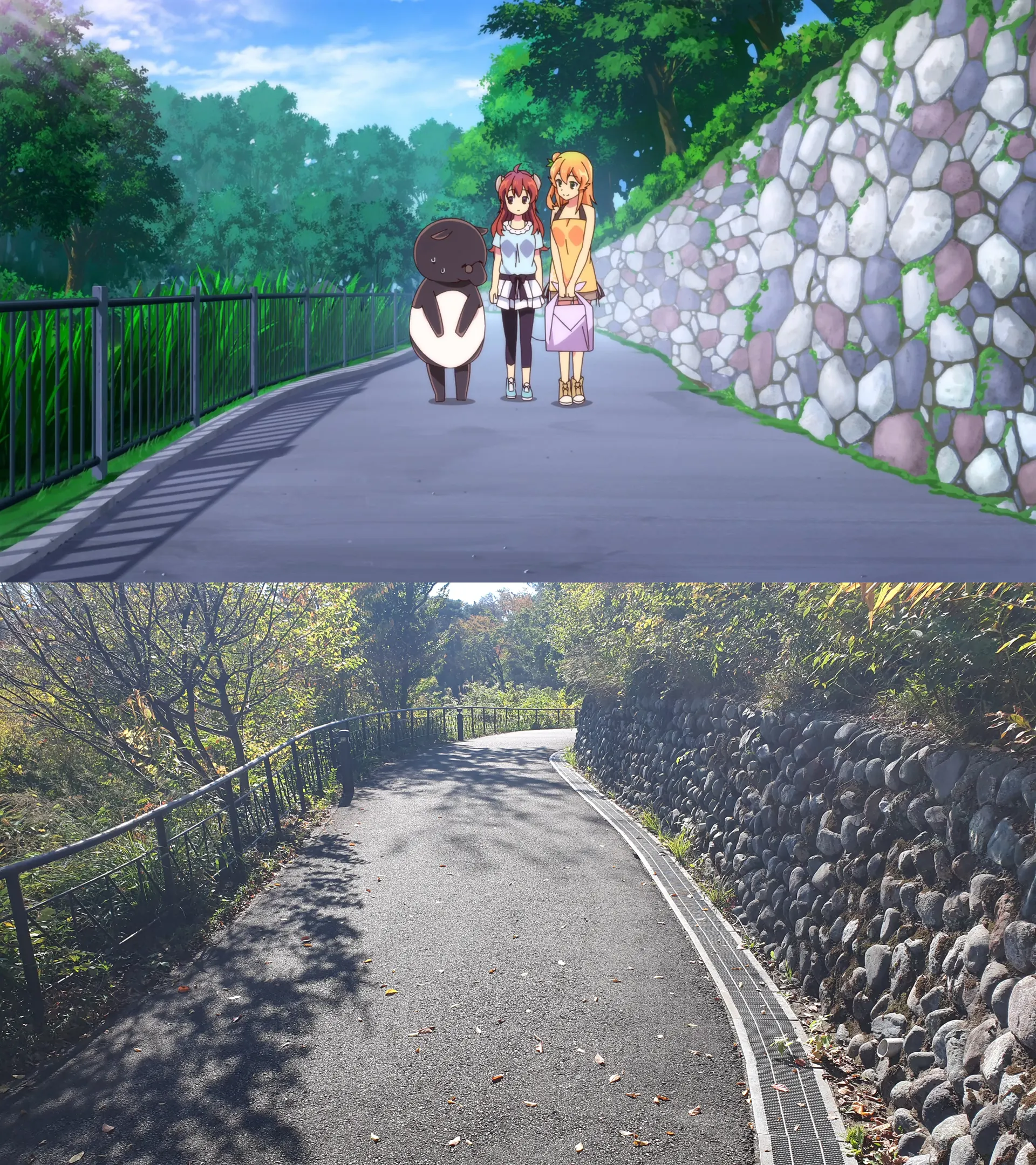 애니메이션에서는 난간의 높이도 낮고, 저쪽에서 바로 맥을 관찰할 수 있는 것처럼 표현했지만 실제로는 좀 멀리 떨어져 있다.