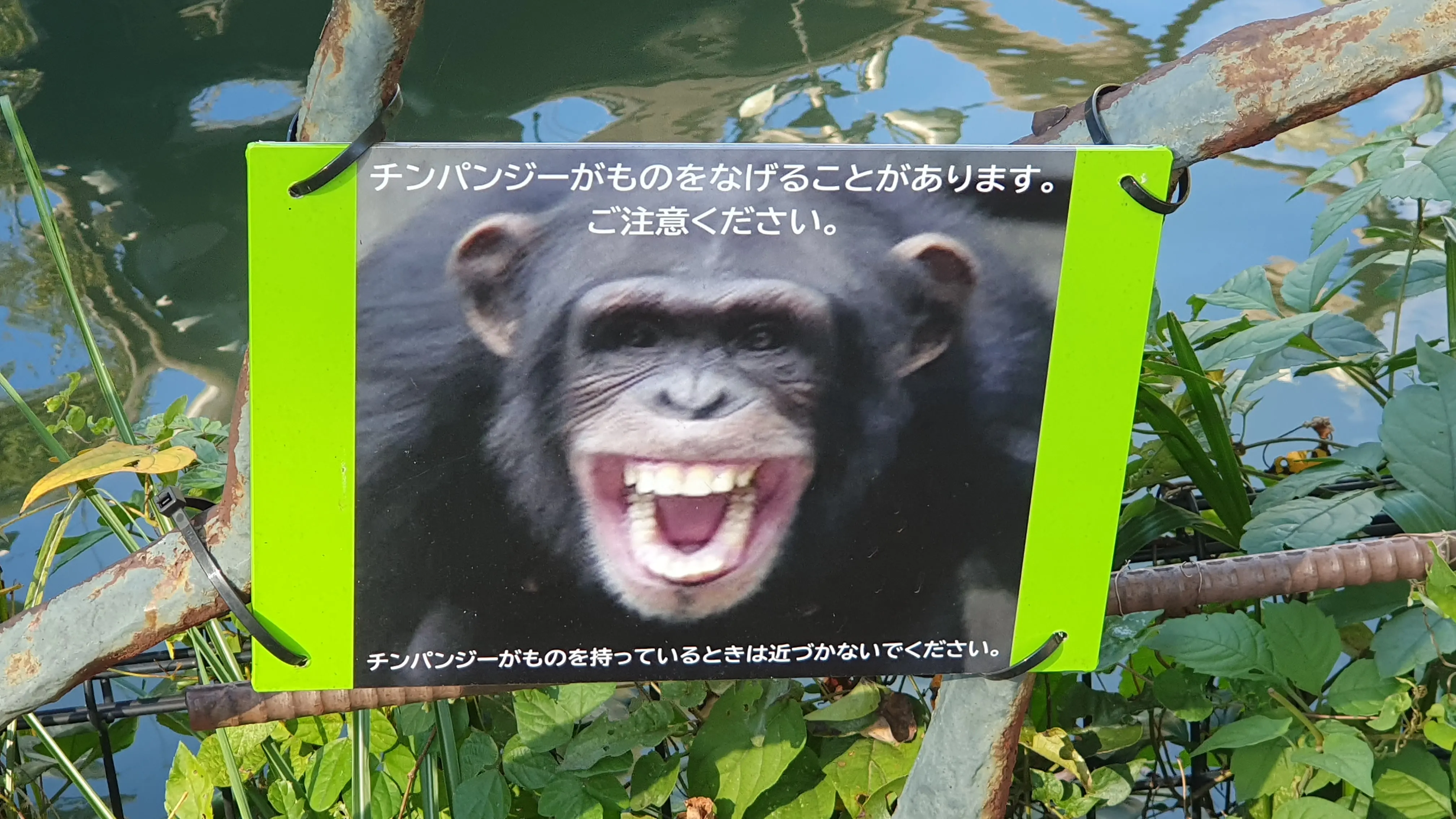 "침팬지가 무언가를 던지는 일도 있습니다. 주의하시기 바랍니다."